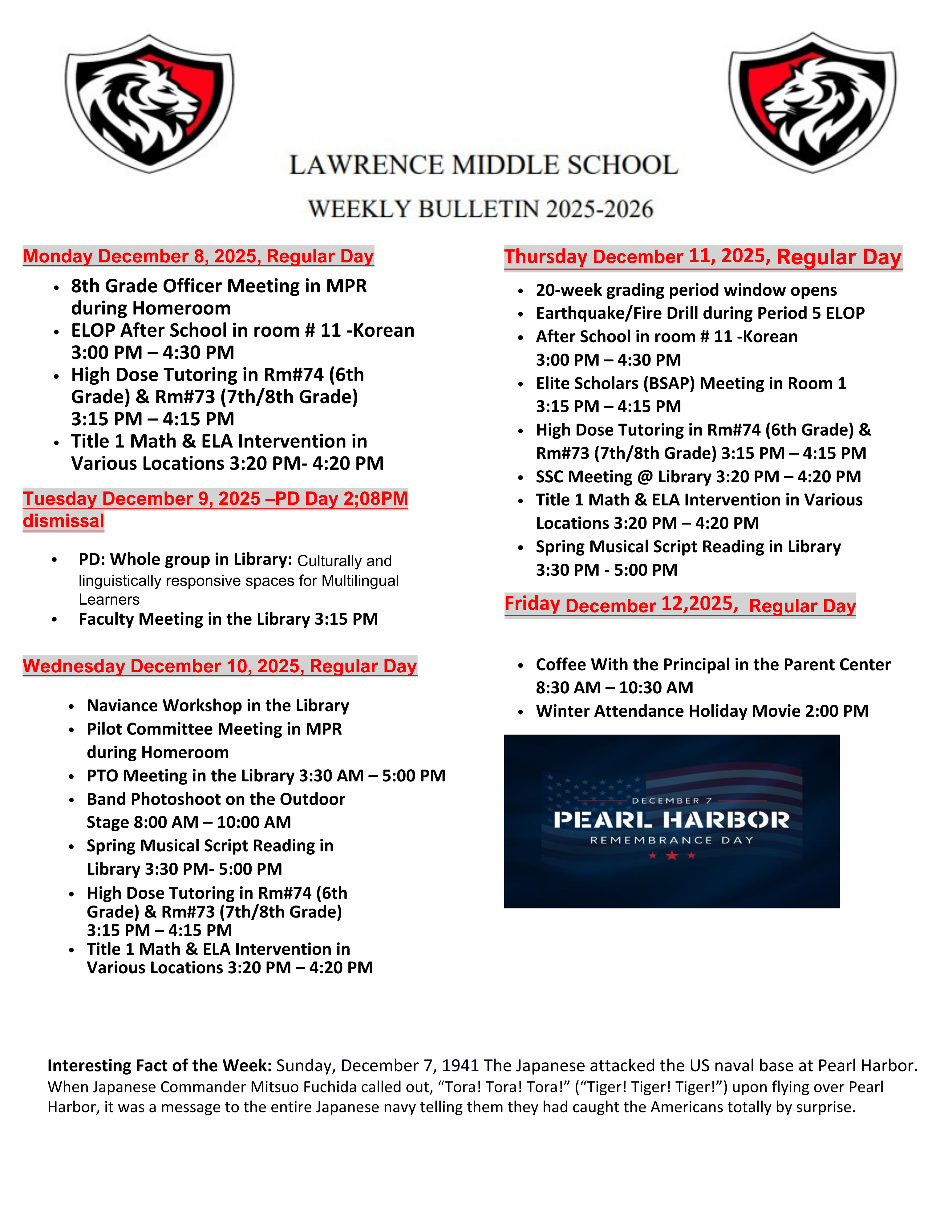 Every day at Lunch in the MPR, Wednesday in the Quad Area
