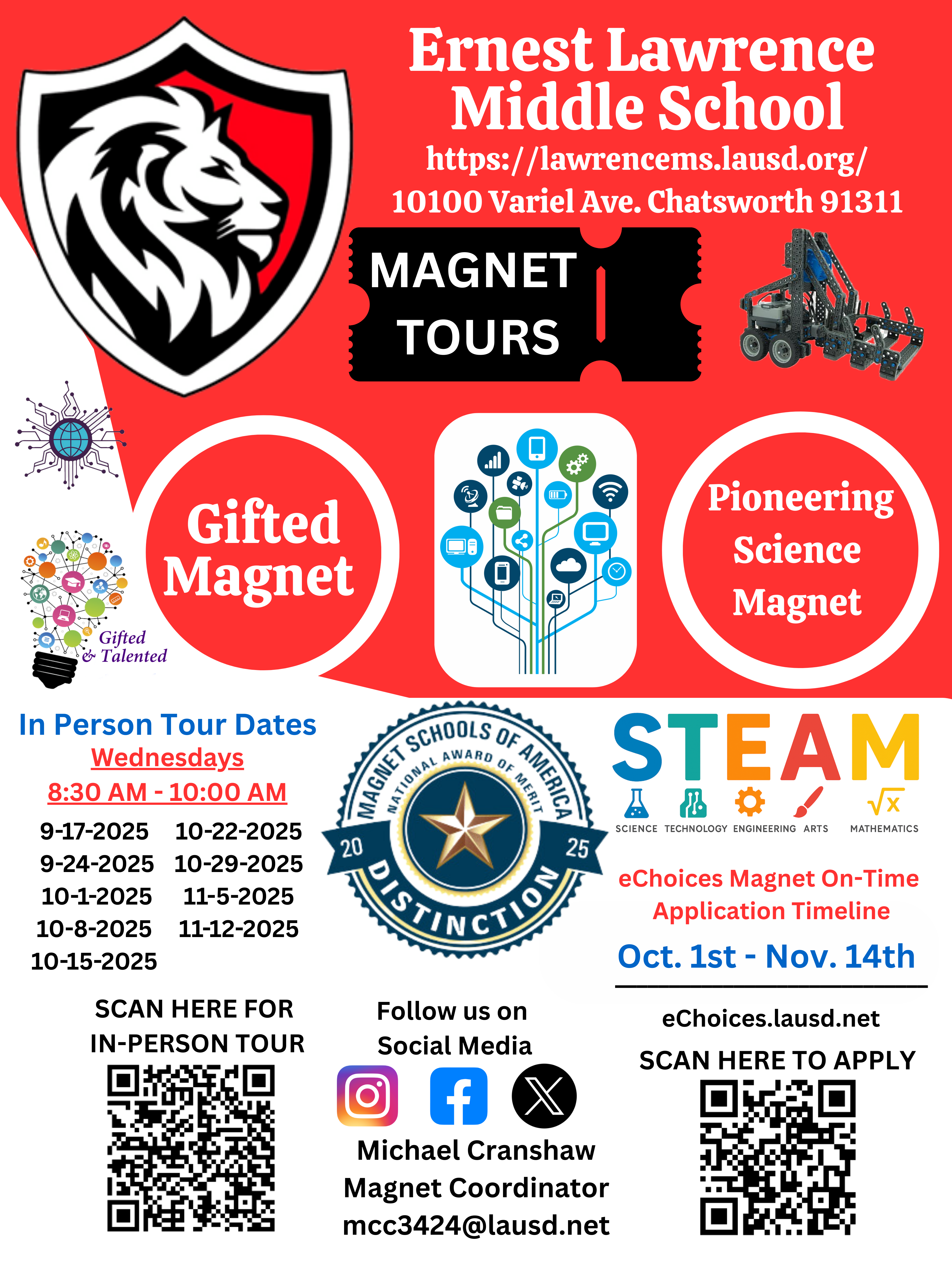 If you have any questions, including scheduling an in-person tour, contact Michael Cranshaw, Magnet Coordinator [email protected]. Also, see the flyer above.